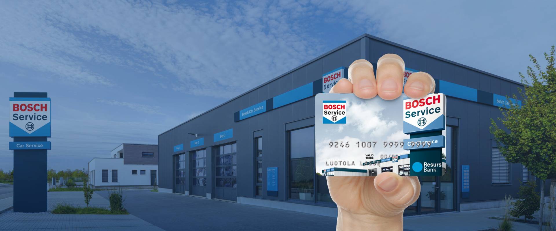 Saat hakemuksen myötä Bosch Car Service -kortin. Kun näytät korttia autohuollon yhteydessä Bosch-korjaamolla, voit maksaa huollon erissä.
